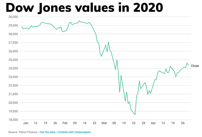 Above is an example of how global events can affect the value of the stock market. The graph offers a striking image to understand change and variability in stock market value. And clearly something big happened late in March.
